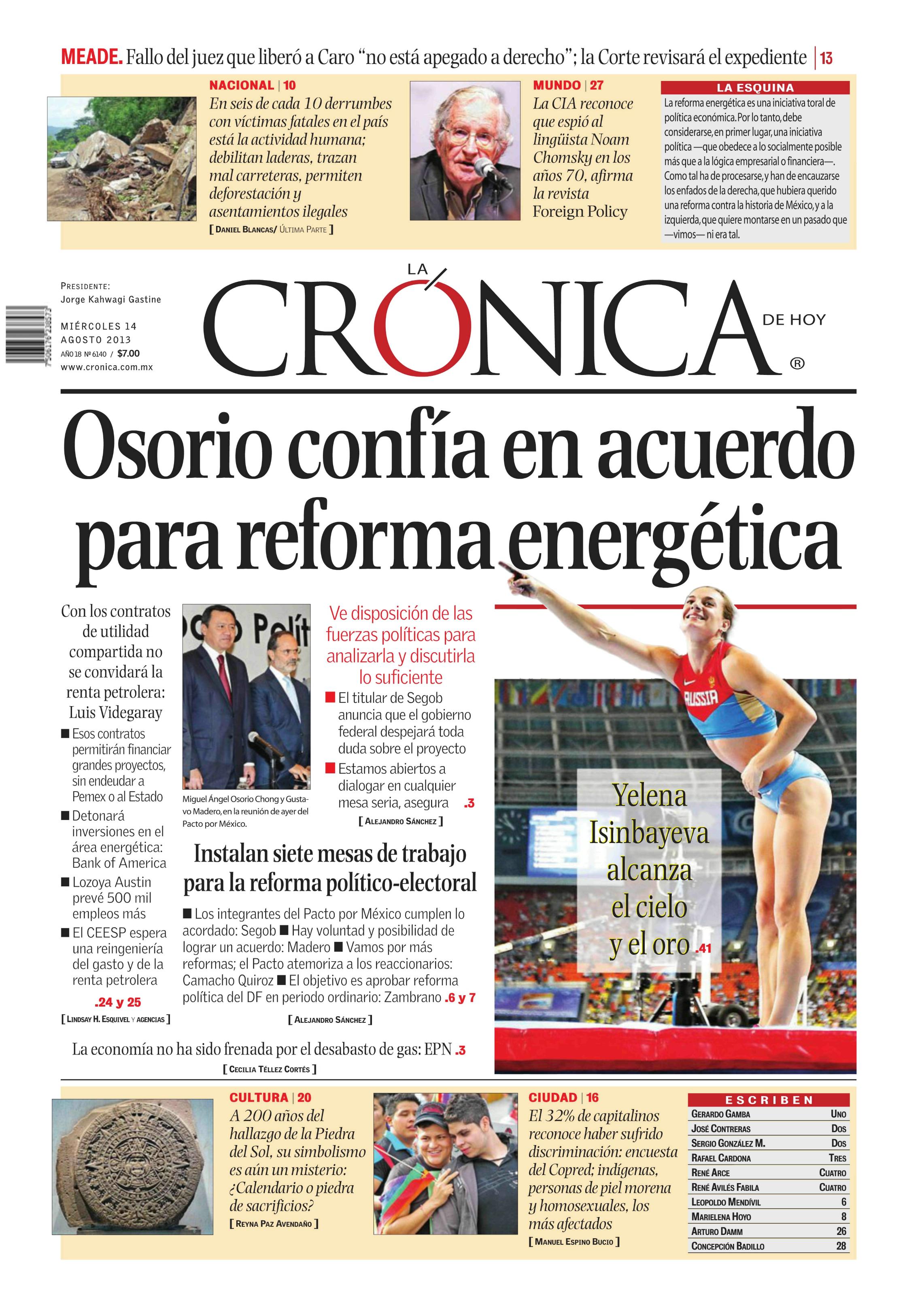 Tiraje: 70,000Londres No. 38, Col. Juárez, CP 06600, Del. Cuauhtémoc, México D.F. Tel. 1084-5800 / www.cronica.com.mx