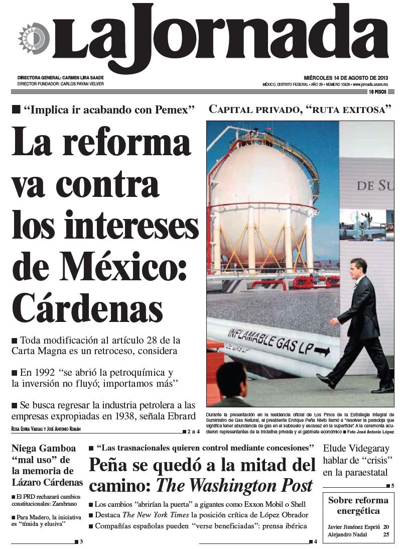Tiraje: 108,593Av. Cuauhtémoc No. 1236, Col. Santa Cruz Atoyac, CP 03310, Del. Benito Juárez, México D.F. Tel. 9183-0300 / www.jornada.unam.mx